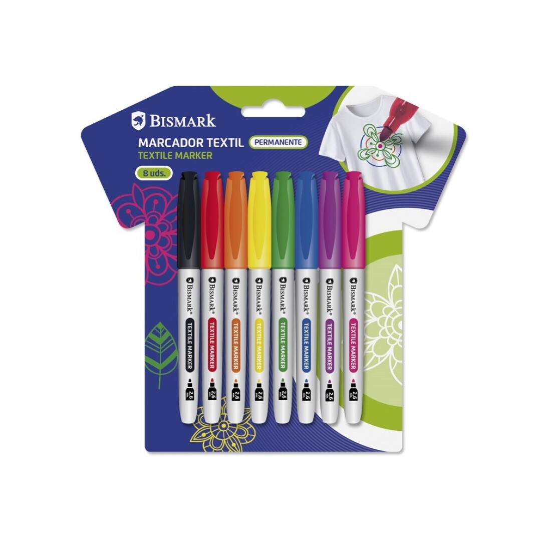 Marcador Têxtil Permanente 8 Cores Vivas